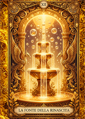 In alto leggiamo il numero romano XII. Il dodici indica la conclusione di un ciclo completo (come i mesi dell’anno o i segni zodiacali). Sei arrivato a una comprensione piena. Non sei più lo stesso di quando hai iniziato questo viaggio e ora hai il diritto di sederti presso la fonte e goderti il risultato della tua evoluzione.